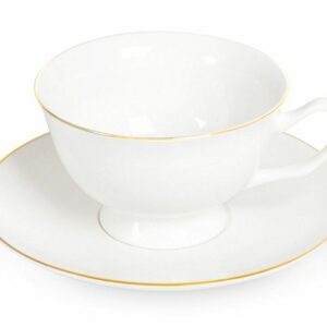 Чайная пара с необычным блюдцем — на нем хватит места не только для чашки, но и для пирожного. Удобство этой чайной пары еще и в том, что для чашки предусмотрена отдельная ниша, которая не даст ей соскользнуть.