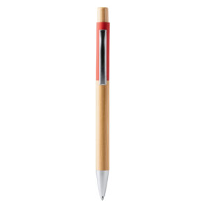 Ручка Авалон с корпусом из бамбука и софт-тач вставкой, красный