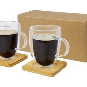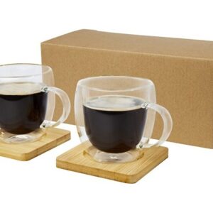 Стеклянный стакан Manti объемом 250 мл с двойными стенками и подставкой из бамбука