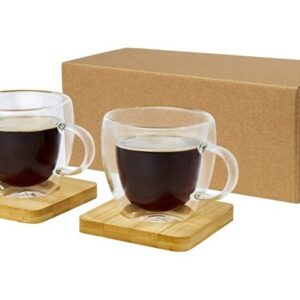 Стеклянный стакан Manti объемом 100 мл с двойными стенками и подставкой из бамбука