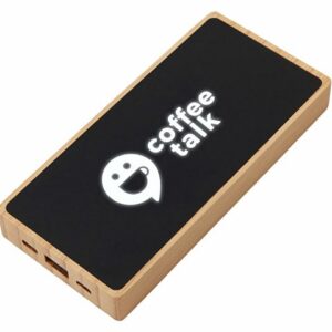 Компактный и стильный внешний аккумулятор ёмкостью 5 000 мАч — идеальный спутник для повседневных дел и коротких поездок. Его корпус сочетает в себе натуральный бамбук и переработанный ABS-пластик, что делает устройство не только более экологичным, но и визуально премиальным. Особый шарм ему придаёт встроенная панель с белой подсветкой с возможностью нанесения логотипа — ваш бренд или инициалы мягко засветятся в темноте, привлекая внимание и подчеркивая индивидуальность. Это не просто power bank — это экосознательный аксессуар, который заряжает ваши гаджеты и вдохновляет окружающих.