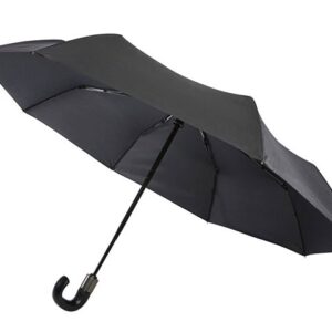 Купол зонта выполнен из переработанного пластика. Гибкие спицы из стекловолокна делают зонт стойким к порывам ветра. Удобная ручка софт тач. Фиксирующая купол застежка на липучке шириной 3 см — дополнительная опция для нанесения вашего логотипа.