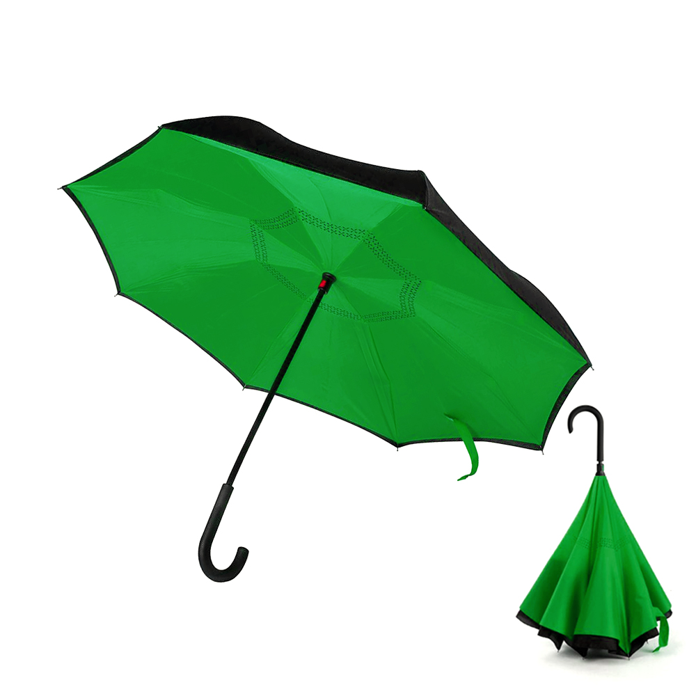 Зонт-трость механический обратного сложения Chaplin выполнен из двухслойной двухцветной ткани эпонж.