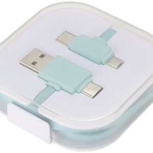 Кабель для быстрой зарядки на 2,4 А (3 x 10 см), обе стороны которого можно персонализировать разными светящимися логотипами. Кабель полностью изготовлен из более экологичных материалов: переработанных ПЭТ-кабелей, бамбука, пшеничных волокон и переработанной пластмассы. Зарядный кабель универсален благодаря 3 выходам (Type-C, Android, iPhone) и может заряжать до трех устройств одновременно. Благодаря двойному входу USB и USB-C кабель совместим с новейшими зарядными устройствами. Поставляется в хлопковой сумке (20 x 8 см) с карточкой из крафт-бумаги. Переработанный PET пластик, Бамбуковое дерево.