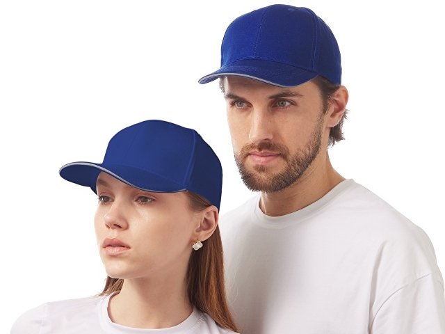Шестиклинная бейсболка со светоотражающим кантом по козырьку и заднему хлястику — отличный вариант для занятий спортом в вечернее время. Объем регулируется металлической застежкой.