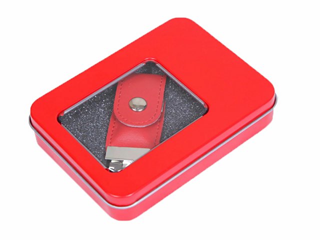 Металлическая коробочка G04 красного цвета с прозрачным окошком