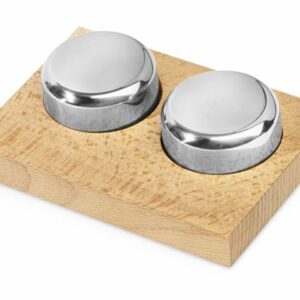 Деревянная часть футляра имеет три вырезанные ниши под каждое из приспособлений для вина, дополненные выемками под пальцы для удобного извлечения.