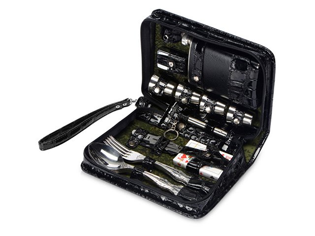 Оригинальный дорожный набор на 4 персоны в барсетке с удобным ремешком для переноски.