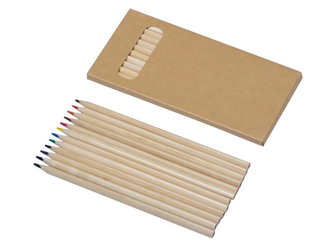 Набор из 12 трехгранных цветных карандашей твердостью ТМ в натуральном корпусе. Нанесение можно сделать на всей поверхности упаковки