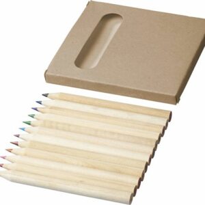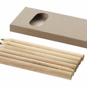 Канцелярский набор. Включает ручку с картонным корпусом и синими чернилами, деревянный карандаш, точилку для карандашей, ластик и линейку длиной 15 см.