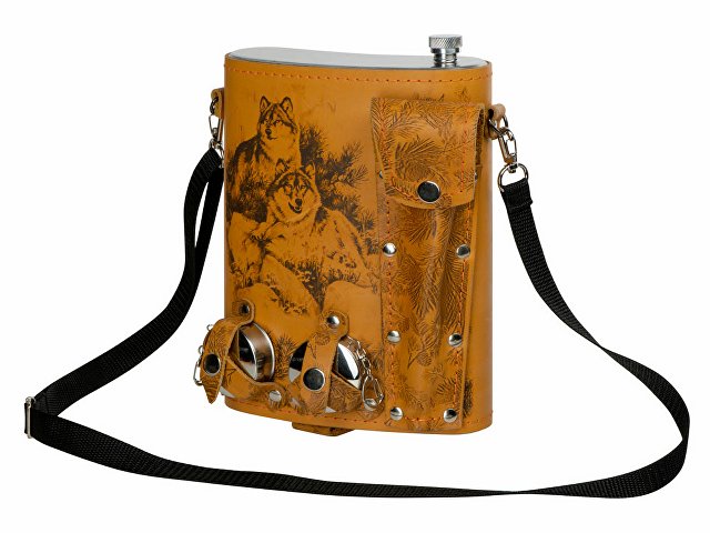 Фляга 2л в оплетке из натуральной кожи с нанесением рисунка методом художественного выжигания.