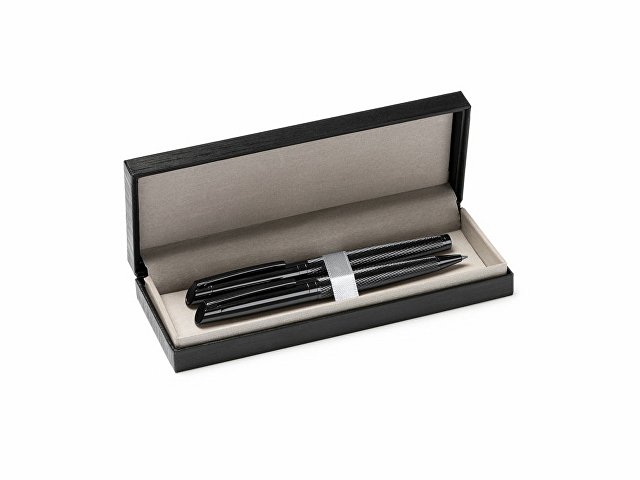 Элегантный набор, состоящий из ручки роллера и механического карандаша. Изготовлен из металла с затемненным рисунком. Поставляется в мягком футляре из кожзаменителя с внутренней подкладкой.