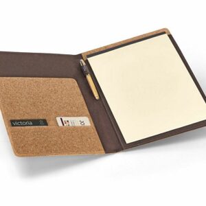 Папка из переработанного картона. Съемный блокнот на 20 листов, ручка в тон из пшеничного волокна, внутренний карман и картхолдер в комплекте.