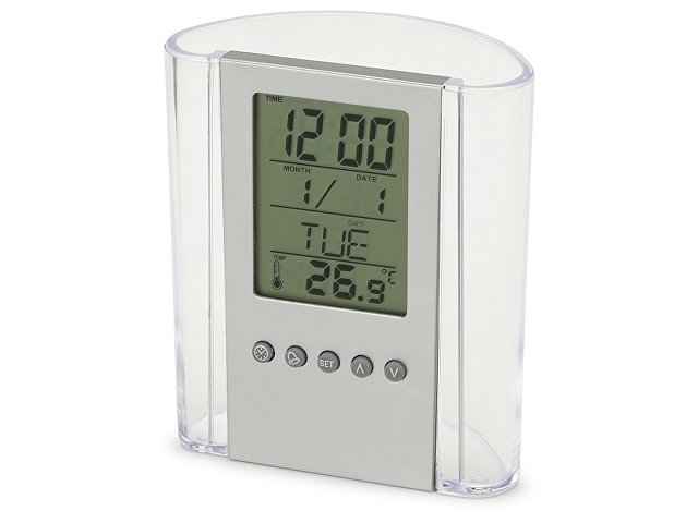 Чрезвычайно практичный элемент Вашего рабочего стола подскажет время, температуру и даже дату, а ещё вместит в себя канцелярские принадлежности. Часы оснащены будильником. Полный порядок на столе плюс комфорт за приемлемую цену.