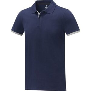 Поло с коротким рукавом. Воротник и манжеты из риба 1х1 с отделкой двойной контрастной плоской. Внутренняя планка контрастного цвета, застежка на 3 пуговицы. Разрезы в боковых швах. Премиальное плотное пике 230 гр.