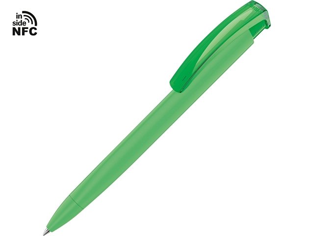 Пластиковая шариковая ручка «Trinity K transparent Gum» soft-touch» с чипом передачи информации NFC обеспечивает быстрый доступ к рекламной информации. Для передачи данных посредством технологии NFC смартфон или планшет, которые поддерживают данную технологию, необходимо поднести к запрограммированной на ручке метке NFC (метка расположена под логотипом NFC). После этого на смартфоне или планшете откроется запрограммированная ссылка на сайт, ролик или начнется загрузка другой информации (заранее загруженной в сеть интернет). Таким образом метка работает как код, при чтении которого смартфон или планшет открывает определенную программу, активирует функцию или ссылку. Можно запрограммировать на метке NFC адрес сайта, каталог и другие рекламные материалы и раздавать вместо визиток. Метка NFC активирует одно действие на смартфоне или планшете.