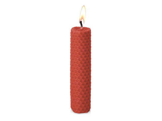 Свеча изготовлена вручную из крашеной вощины. Вощина — это рифленая пластина изготовленная из воскового сырья, которая имитирует донышки сотовых ячеек.