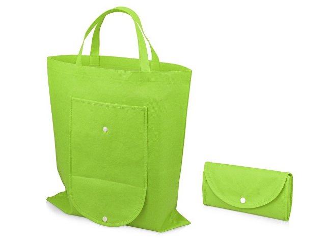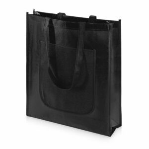Вместительная складная сумка из нетканого материала с открытым основным отделением и карманом на пластиковой кнопке спереди. Многоразовая сумка- отличная альтернатива пластиковому пакету. Высота ручек 15 см.