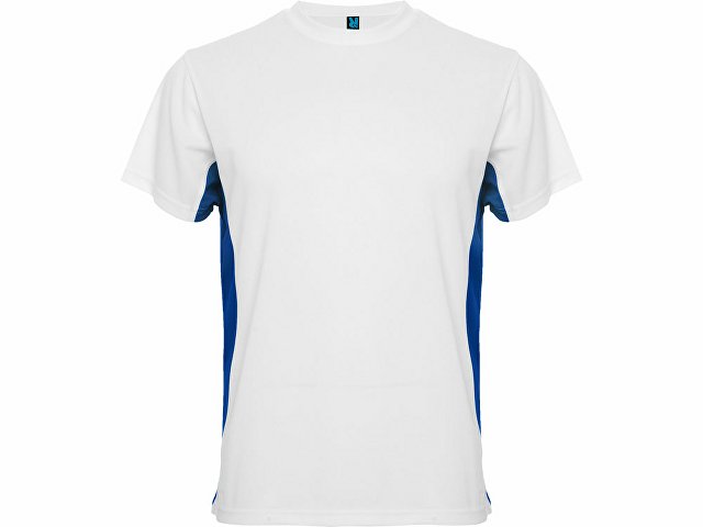 Спортивная футболка из технологического полотна и колорблок вставками. Круглый вырез горловины укреплен тесьмой. Контрастные вставки по бокам. Дышащее технологичное полотно — легко стирается и быстро сохнет.