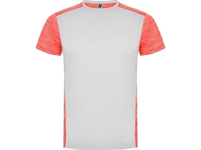 Футболка с коротким рукавом из технологического полотна. Круглый вырез горловины. Комбинация двух полиэстеровых полотен. Основное полотно на полочке со структурой, дополнительное полотно на спинке, рукавах и плечах с меланжевым эффектом. Задняя часть немного длиннее. Легко сохнущее дышащее полотно.