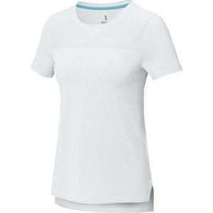 Спортивная футболка с коротким рукавом реглан для женщин. Круглый вырез горловины с отделкой плоским швом. Рукав сложного кроя для обеспечения дополнительного удобства при занятиях спортом. Отделка плоским швом с застилом по пройме и рукавам.