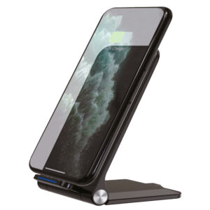 Беспроводное зарядное устройство, включающее 3 области для зарядки телефона, часов и наушников. На лицевой стороне имеется подставка под телефон, а также световая индикация.