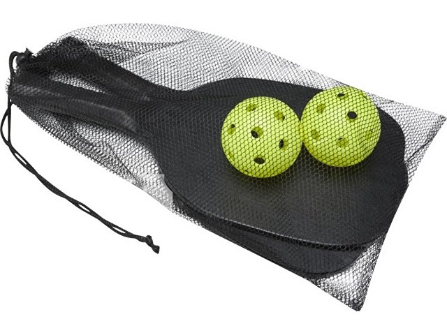 С этим комплектом ракеток из буковой древесины вы получите массу удовольствия во время игры на пляже, в парке или саду. Ракетки размером 40 x 20 x 0,7 см окрашены в черный цвет и имеют много места для печати логотипа. Ручки обернуты лентой из ПУ, обеспечивающей максимальное сцепление во время интенсивной игры. В комплекте есть 2 мячика из РР-материала, он упакован в сетчатый чехол для хранения из полиэстера размером 45 x 26 см.