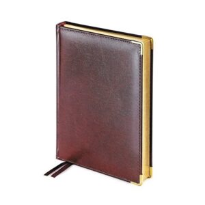 Классический деловой ежедневник линии Boss – образец элегантности. Гладкую тонкую фактуру экокожи подчеркивает декоративная строчка по контуру и металлические закругленные уголки золотистого цвета.