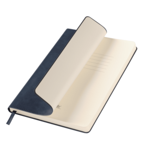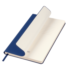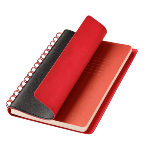 • Вертикальная резинка-фиксатор с вставкой из ПУ-материала обложки и петелька под ручку, в цвет обложки