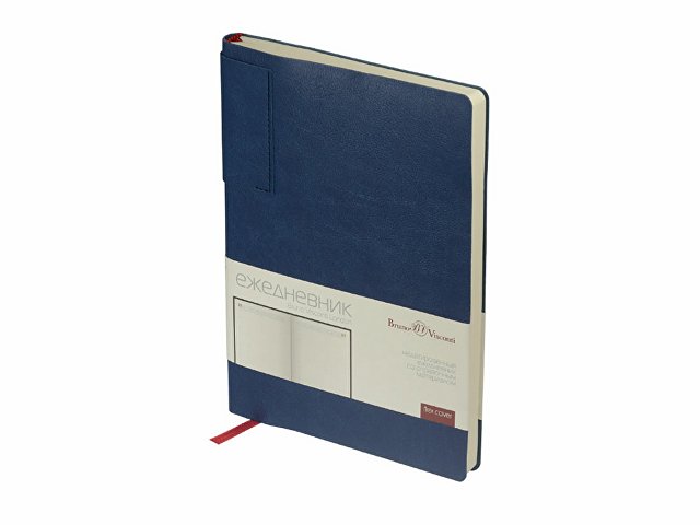 Лаконичная модель в ярком исполнении: гибкая обложка синего цвета с контрастной или в цвет обложки нашивкой. Выполнен из качественной и прочной искусственной кожи, крепление внутреннего блока — книжный переплет, закладка- ляссе. Углы обложки скруглены.