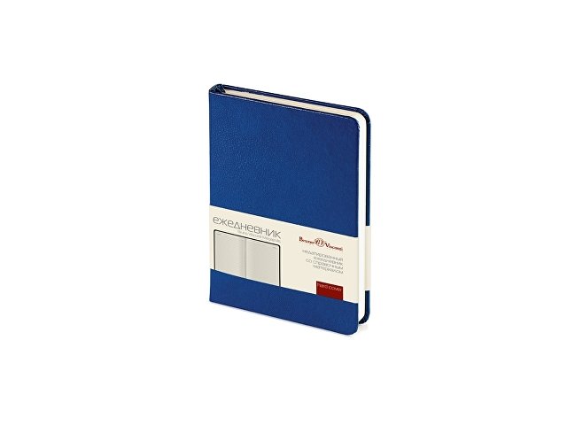 Строгий офисный дизайн, классический долговечный переплетный материал с гладкой фактурой — безусловные преимущества этих корпоративных моделей. Синяя обложка с закругленными уголками станет отличной основой для Вашего фирменного логотипа. Недатированный ежедневник выпускается в формате А6, что соответствует размерам 87*131. Блок включает 200 страниц из бежевой высококачественной бумаги плотностью 70 грамм. Первые 8 листов отведены под справочную информацию. Восемь последних листов снабжены микроперфорацией, гарантирующей аккуратную линию отрыва. Под обложкой расположена шелковая закладка-ляссе.