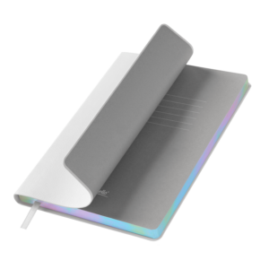 Внутренний блок с кремовыми страницами и срезом гармонично сочетается с нежным оттенком форзаца и нахзаца, повторяющим цвет внутреннего материала обложки. Надежная полускрытая пружина обеспечивает удобство использования и долговечность.