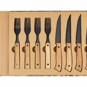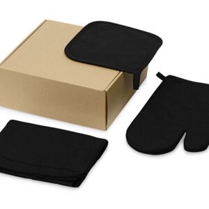 Набор для барбекю из 5 предметов: лопатка (29 x 7 см), вилка (29 x 1,7 см), нож (29 x 2,4 см), разделочная доска (19 x 13 x 1,1 см) и рукавица (25 x 16 см).