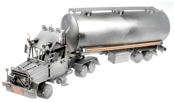Металлические фигурки — ручная работа талантливого дизайнера из Германии. Нет такой области в жизни, что не вдохновила бы его на создание очередной металлической фигурки причудливой формы, отличительной особенностью которой является использование таких предметов, как болты, гайки, проволока, различные пластины и т. п. Необыкновенный стиль, который можно трактовать как Modern, Hi-Tech или даже Steampunk, сделали фигурки популярными во всём мире.Такая фигурка подойдет для любителей техники, автолюбителей или в качестве подарка. Надежный и долговечный, грузовик из металла станет ярким акцентом в вашем доме или офисе.
