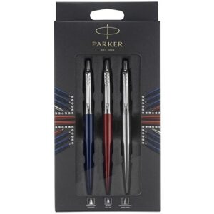 Комплект шариковых ручек с эксклюзивным дизайном, состоящий из трех шариковых ручек с цветовым акцентом. Шариковая ручка с синей алюминиевой пластиной предварительно заполнена синими чернилами, а две другие ручки предварительно заполнены черными чернилами. Упакован в черную подарочную коробку. Бамбуковое дерево, Алюминий.