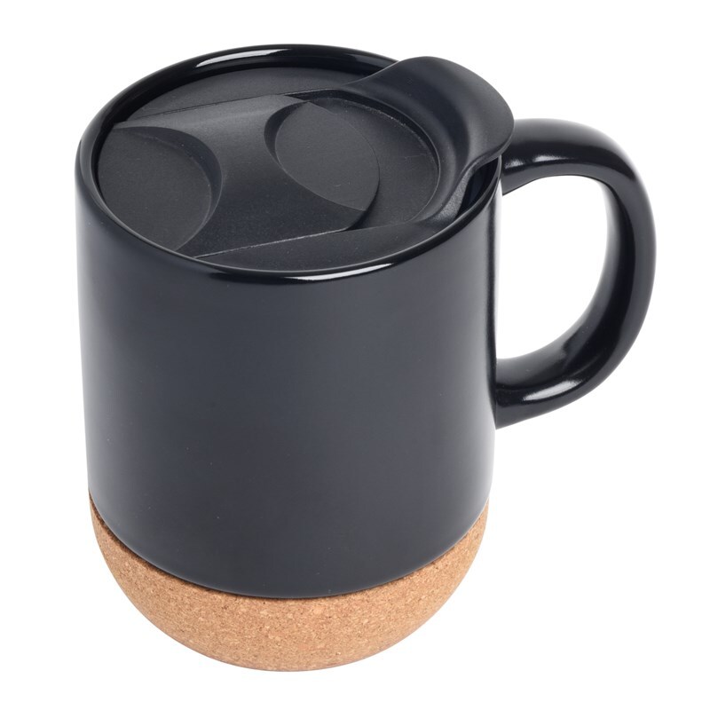 Кружка DAY & NIGHT: Керамическая кружка с пробковой подставкой (съемная для удобного мытья), съемная крышка, объем ок. 350 мл