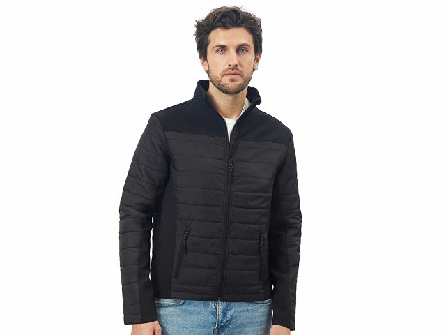 — гибридная конструкция из 2 видов материалов – софтшелл гарантирует ветронепроницаемость и легкость, а стеганные вставки добавляют утепления.