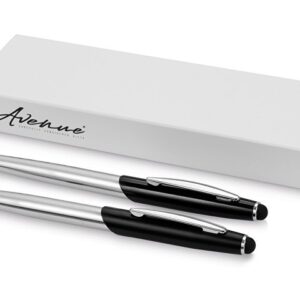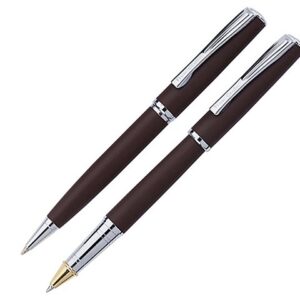Набор ручек Legato представляет собой элегантное сочетание шариковой ручки и ручки-роллера. Обе ручки имеют верхний корпус из переработанной латуни с золотой хромированной отделкой, нижний корпус с черным напылением, аксессуары из металлического золота с хромированием, логотип LUXE на среднем кольце и синие чернила. Шариковая ручка имеет длину письма 800 метров и размер пера 1,00 мм. Ручка-роллер имеет длину письма 400 метров и размер пера 0,7 мм. Recycled brass. #?0:>2:0: FSC Mix Credit P5.1 CU-COC-877277.