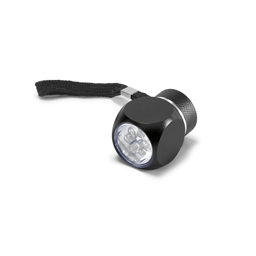 Фонарик из алюминия с 6 лампочками LED. Включает 2 батарейки CR2032. 28 x 40 x 28 мм