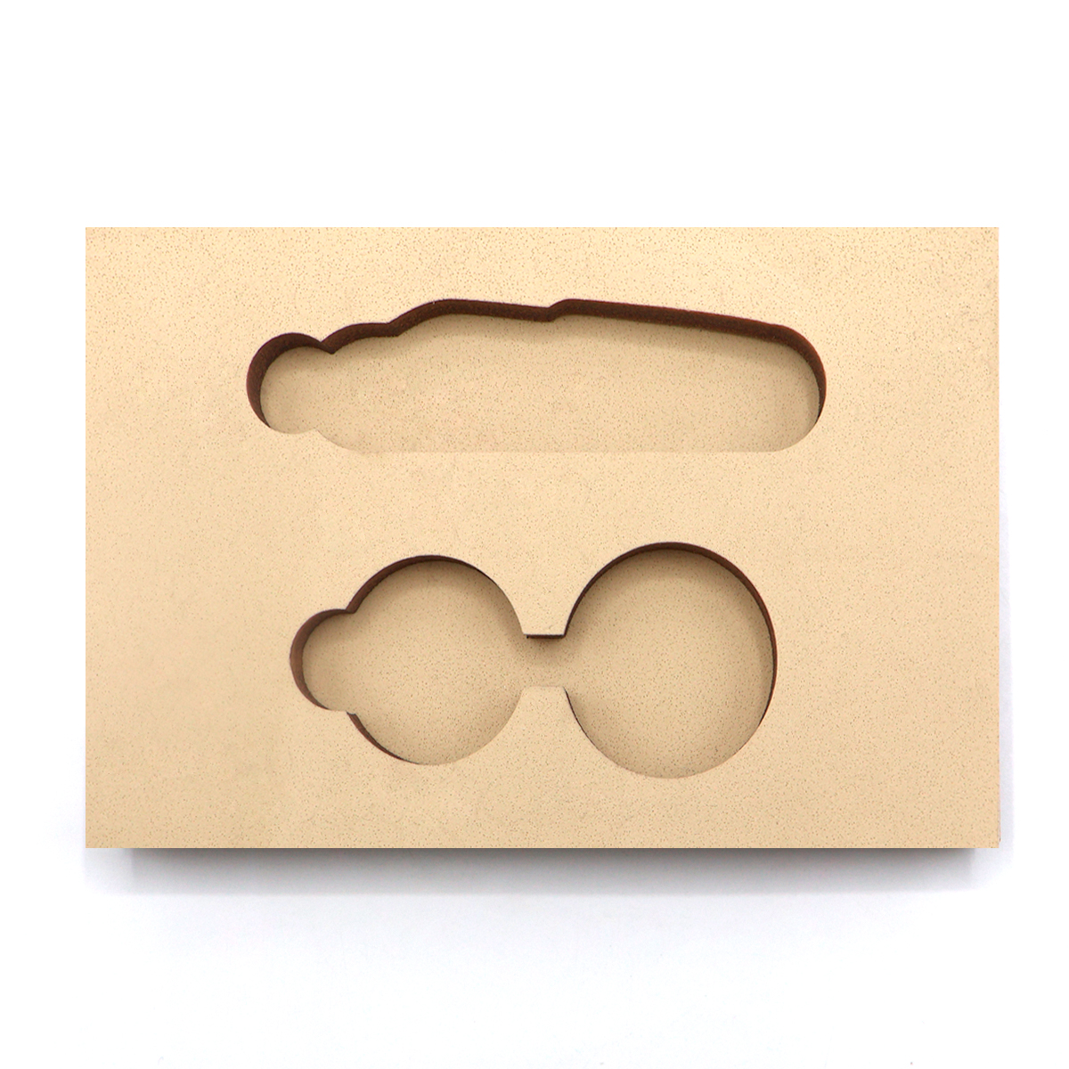 Ложемент, выполненный из бежевого ЭВА материала, представляет собой многослойную конструкцию, состоящую из двух слоев: нижнего толщиной 10 мм и верхнего — 10 мм. Согласно утвержденному макету, проемы для размещения предметов могут быть расположены как в одном, так и в обоих слоях.