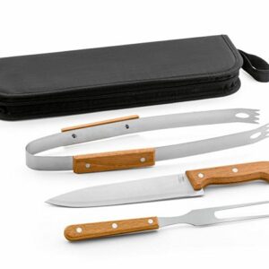 Набор для барбекю от Tour de Grass состоит из лопатки, вилки и ножа с ореховыми ручками. Все три приспособления для готовки — изящные, функциональные, прекрасно подойдут для подарка, а футляр на магните, идущий в комплекте, решит вопрос упаковки.