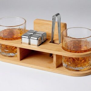 Набор для виски «Buddies» станет прекрасным дополнением к этому благородному напитку. Набор упакован в брендированную коробку, в которой вы найдете бокалы и камни в мешочке. Камни выполнены из талькохлорита, бокалы — из стекла.