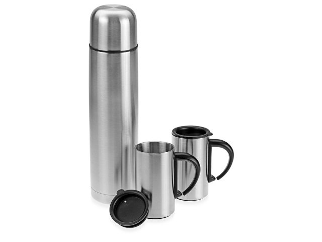 Отличный набор, состоящий из термоса на 1000 мл и двух термокружек на 300 мл, пригодится и в дороге, и во время пикника или похода. Нержавеющая сталь не впитывает запахи и отлично удерживает тепло более 24 часов. Термокружки идут со специальными пластиковыми крышками. Упакован в картонную коробку с мягким поролоновым ложементом.