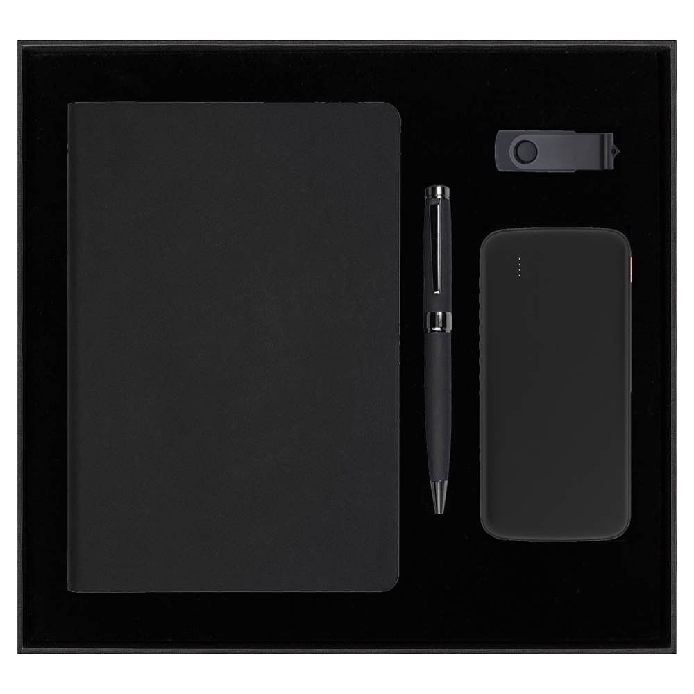 4. Флеш накопитель USB 2.0 16GB. Материал: пластик софт тач/металл. Цвет — чёрный.