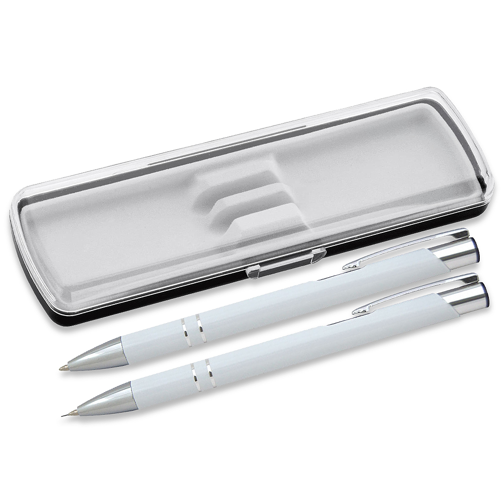 Практичный и стильный вариант бизнес подарка.Ручки можно дарить в разных ситуациях. Поводом может стать окончание учебы, продвижение по службе или карьерной лестнице, день рождения, годовщина или любой другой случай.Выбор ручки – это лишь половина дела. Важно преподнести ее так, чтобы подчеркнуть важность момента и ценность подарка. Ваш главный помощник в этом – красивая упаковка. В набор входят: — Карандаш механический Legend 0.5 мм, металл, белый — Ручка шариковая Legend Requis, металлическая, белая — Футляр для двух ручек Pencase Smart Duo из пластика, прозрачный/черный