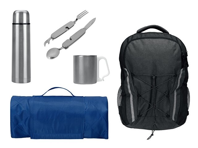 В нем есть все, что необходимо — ложка, вилка, ножик, открывалка бутылок и жестяных банок. Также имеется удобное кольцо для подвешивания. При необходимости набор разделяется на две части.