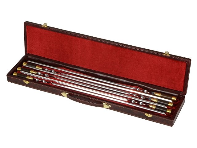 Набор шампуров «Охотничий» для любителей выездов на природу и уникальных подарков. Поставляются в дипломате из натуральной кожи. Шампура выполнены из нержавеющей стали и имеют ручки из натурального дерева. Каждый шампур изготовлен в виде шпаги. Идеальное решение для подарка человеку, у которого уже есть все.