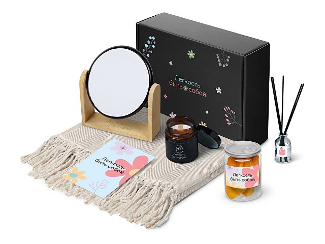 Re:f. Shelter — о чувстве защищённости и тихом пространстве для себя. Укутайтесь в плед, зажгите свечу, пусть диффузор наполнит комнату мягким ароматом — так создаётся настроение покоя и уюта. Зеркало становится маленькой деталью внимания к себе, а сушёное манго добавляет солнечную, тёплую нотку, напоминая о простых радостях. Этот набор — про личное укрытие, где можно выдохнуть, замедлиться и просто побыть в моменте.