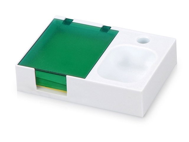 Яркая и удобная поставка под ручку, канцелярские скрепки и бумажный блок (4 х 5 см) превосходно организует ваше рабочее место. Отличный подарок при проведении промо-акций.