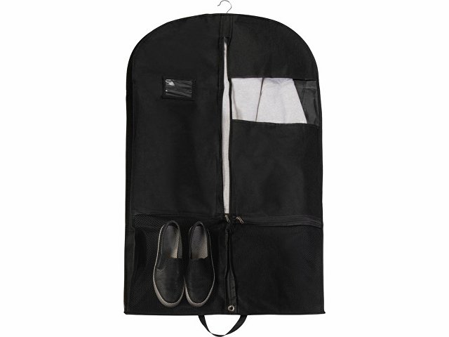 Дорожный чехол из нетканого материала для одежды, который помогает перевозить одежду чистой и без складок. В сложенном виде напоминает форматом портфель, легко переносится с места на место благодаря удобным ручкам. Чехол имеет отверстие для крючка вешалки, на которую вы можете повесить одежду перед тем, как поместить ее внутрь.